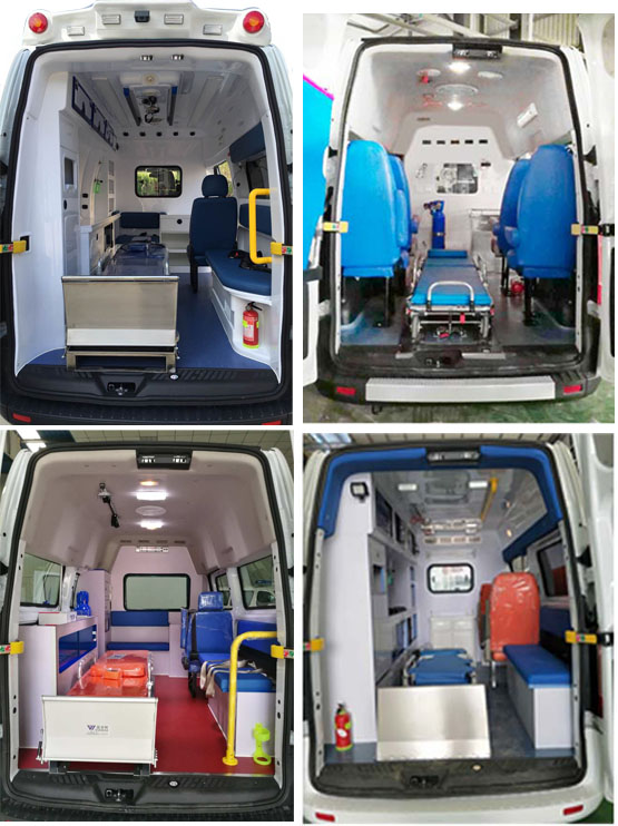 該車配備醫(yī)療器械柜,氧氣瓶,擔(dān)架,消毒燈救護專用設(shè)備。選裝左側(cè)右側(cè)以及前面報閃燈,選裝頂部換氣扇,選裝側(cè)拉門踏板,選裝前窗上部報警器時整車高(mm);2407;選裝不同風(fēng)格的警燈.ABS系統(tǒng)控制器型號:EV5051,生產(chǎn)廠:博世汽車部件(蘇州)有限公司,選用輪胎:215/75R16LT,層級:8PR,10PR,12PR。