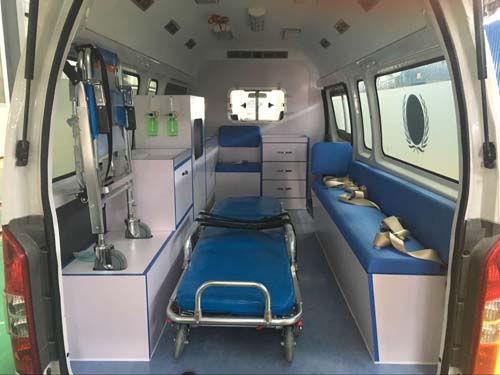 該車配備醫療器械柜,擔架,特種車輛標志燈及警報器等救護專用裝置.特種車輛標志燈可裝在車頂或車輛前額位置凸臺上。不裝車頂設備或僅裝前額位置特種車輛標志燈高2595mm,選裝車頂特種車輛標志燈高2790mm,選裝車頂空調高2910mm.ABS系統控制器型號:6C11 2M110 A*;ABS系統控制器生產企業:博世汽車部件(蘇州)有限公司;發動機最大凈功率99kw.